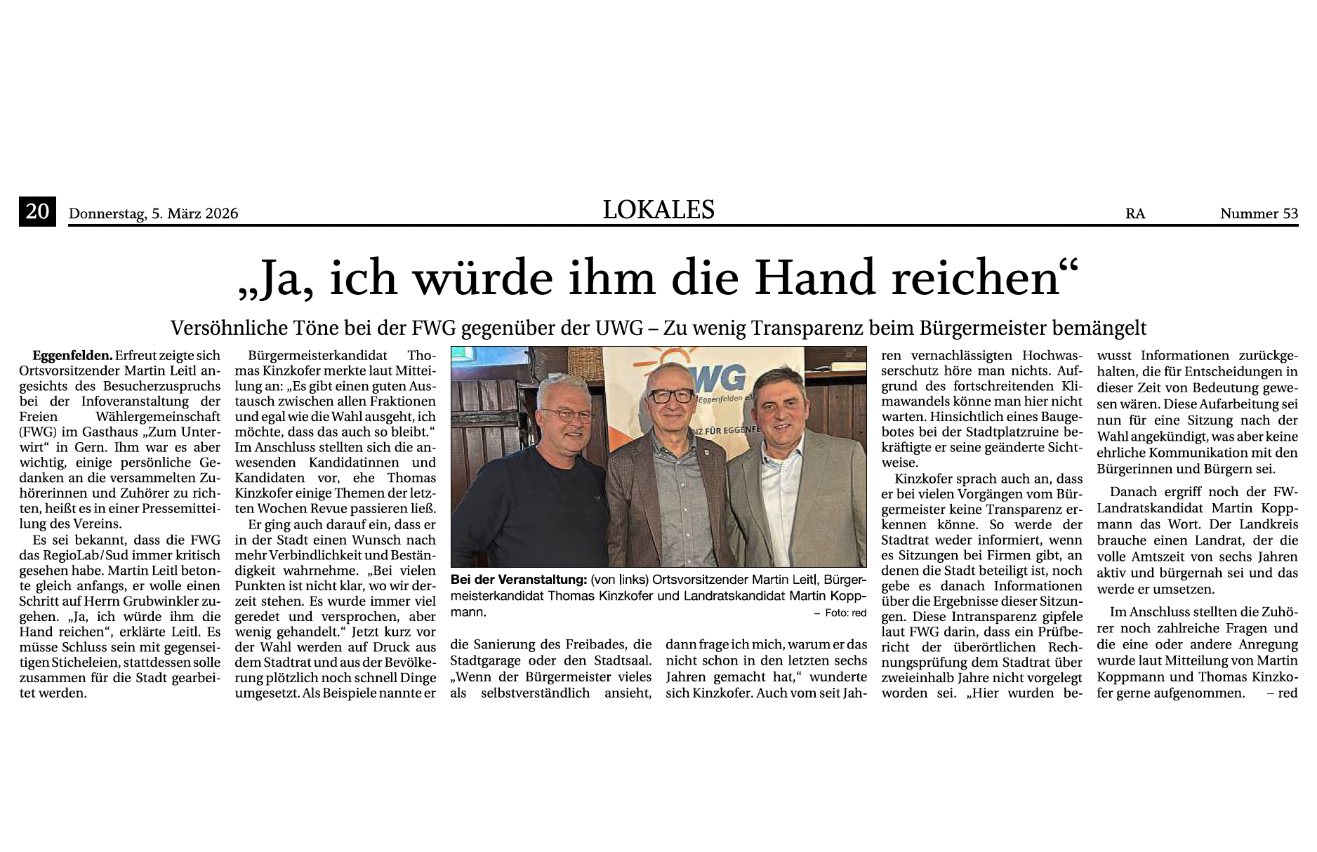 Die FWG Eggenfelden steht für inhaltliche Auseinandersetzung, Transparenz und gegenseitigen Respekt. Daran halten wir fest.